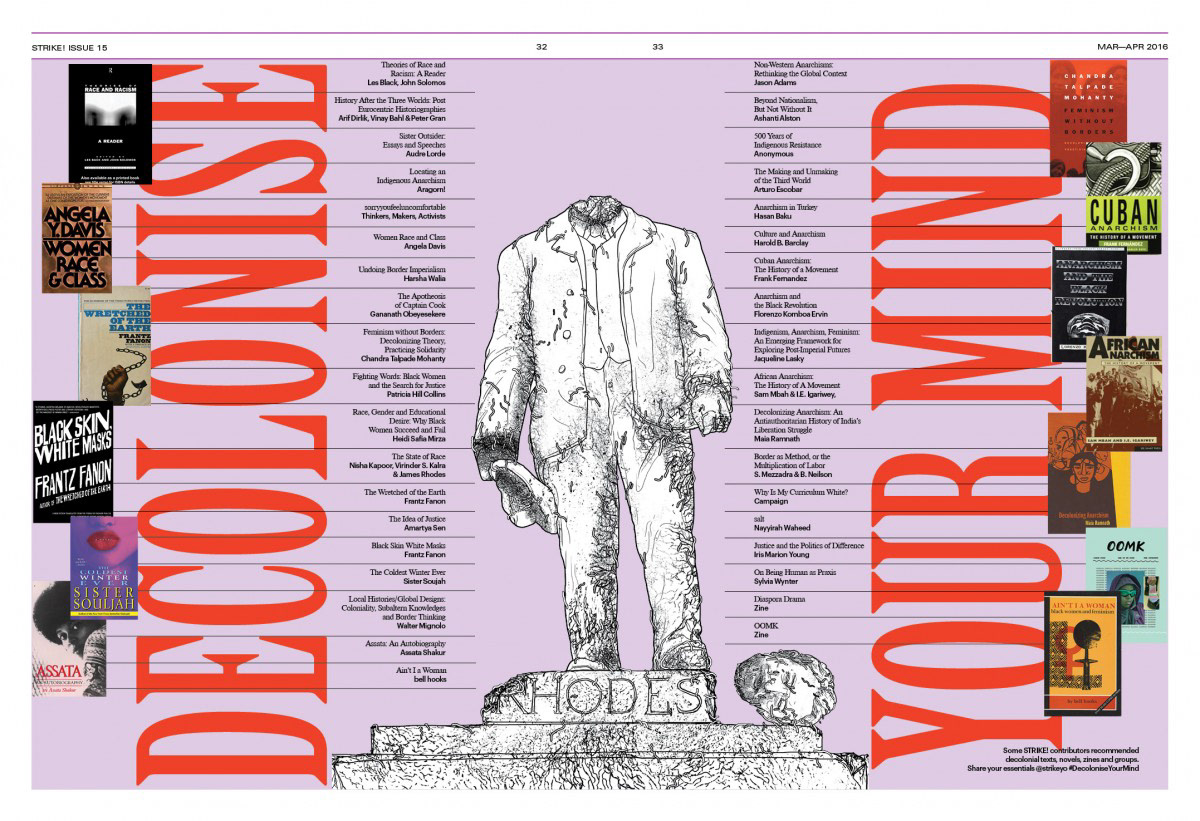 I got to make an illustration for the RHODES MUST FALL movement (https://en.wikipedia.org/wiki/Rhodes_Must_Fall) in the UK for STRIKE! Magazine Issue 15: "Decolonize Your Mind". Check them out over at: http://strikemag.org/